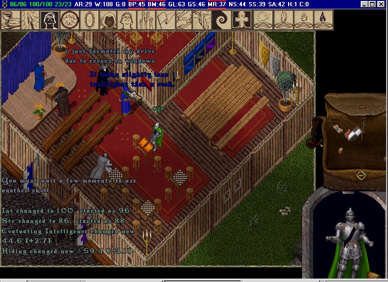 baja counsellor hall late 90's they added stacks of bacon, bread and cheese so newbies could eat on the table in the pic, i cant recall what the signs said tho, in the room out of shot there was a yew table, the doors are locked the counsellors would tele people in for "private" conversations, it was ment to be a secure room but isnt as you could teleport in from the n/w corner as the building is missing the corner post, hope its enough to re create the hall cheers prosonic